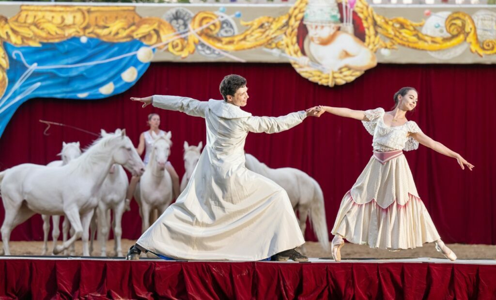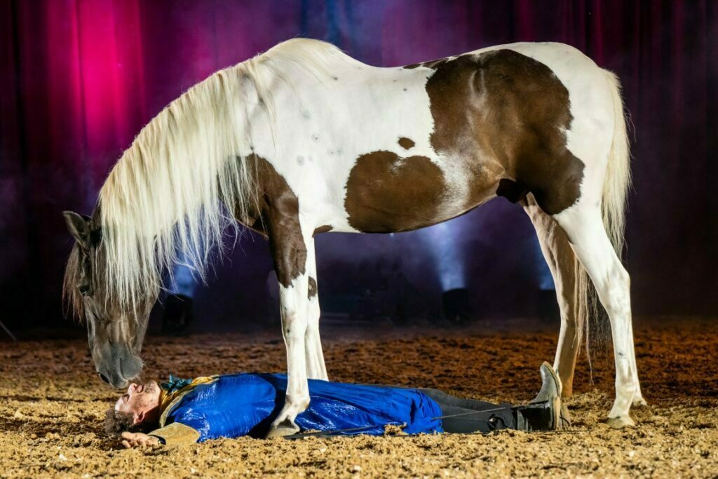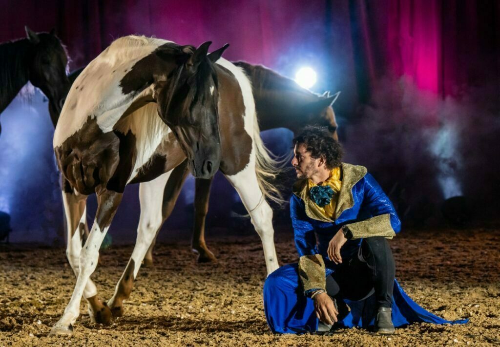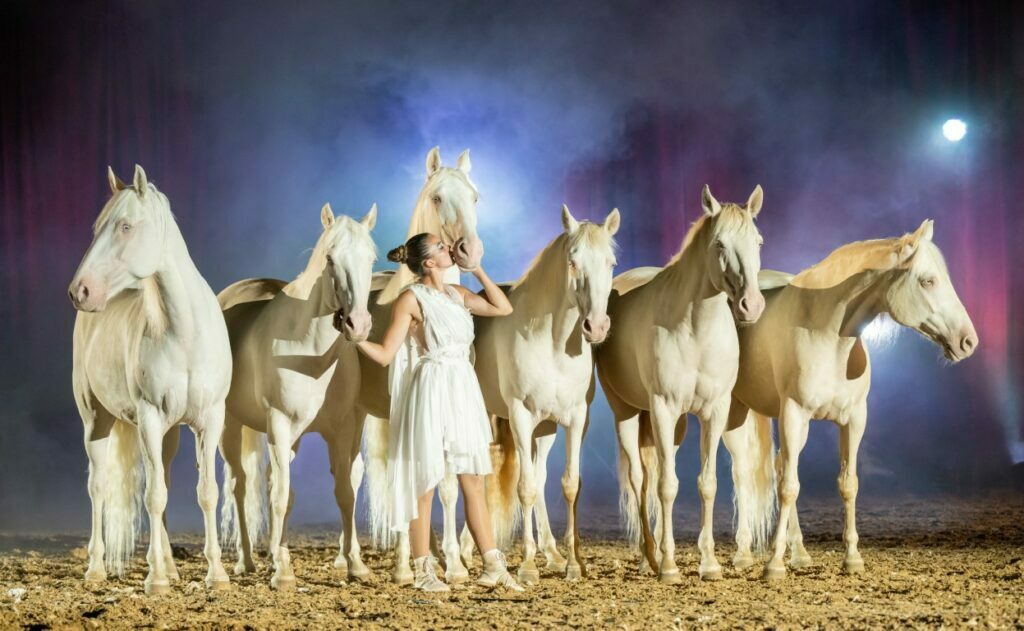 So viele Pferderassen es gibt, so unterschiedlich dürfen sie sich in unserer Show präsentieren: Ob kraftvolle Andalusier, stolze Araberhengste, elegante Friesen, Kaltblüter, Ponys oder wendige Quarter Horses – unsere mehr als 25 Pferde und ein Esel zeigen meisterhafte Darbietungen in Freiheitsdressur, Trickreiten, klassischer Dressur oder Comedy. Begleitet werden sie dabei von zauberhafter Musik, spektakulären Bühnenbildern und unserem hochkarätigem Ballettensemble.