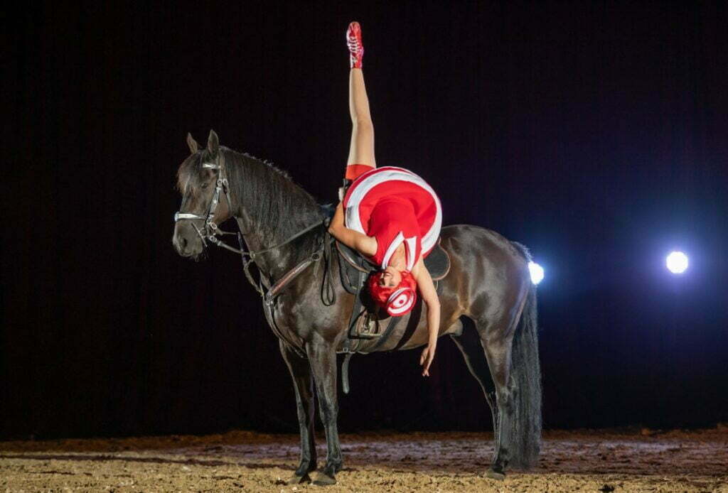 Ob Freiheitsdressur oder Trickreiten, Klassische Dressur oder Zirzensik: Tanya Baliuk ist ein wahres Allround-Talent. Bei MONDWIND – „Der Zaubermantel“ tritt sie erstmals als Solo-Trickreiterin mit einem pechschwarzen Araberhengst in Erscheinung. Nervenkitzel garantiert!